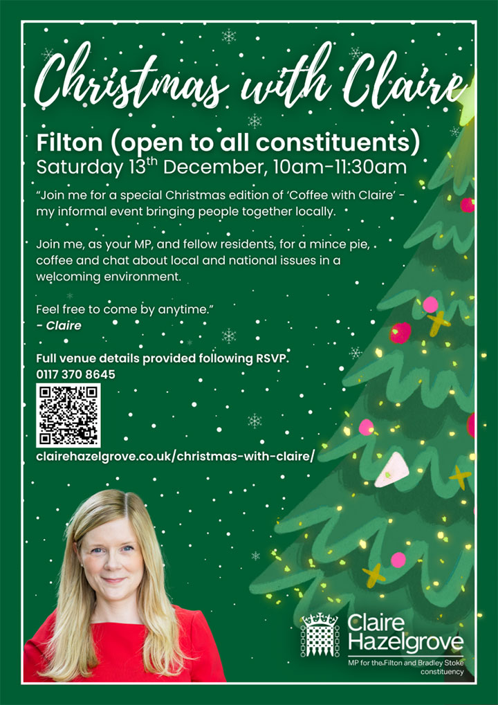 Join me for a special Christmas edition of ‘Coffee with Claire’ – my informal event bringing people together locally.